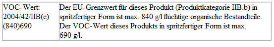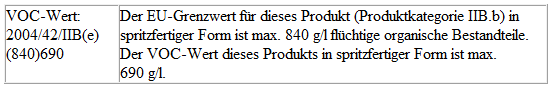Die Trocknung bei +20 ºC Raumtemperatur beträgt 10 Minuten. Eine eventuelle Infrarottrocknung ist bei diesem Produkt möglich.