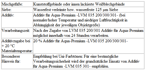 Hinweise zum Mischen für "Aqua-Premium-System"