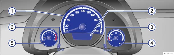 Je nach Fahrzeugausführung kann in der Variante 2 das Aussehen der Skaleneinteilung unterschiedlich sein ⇒ Abb. 11 .