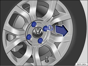 Die Anti-Diebstahl-Radschraube hat eine separate Abdeckkappe. Diese passt nur auf die Anti-Diebstahl-Radschraube und nicht auf die herkömmlichen Radschrauben.