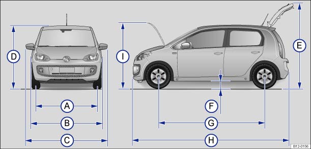 | Ⓔ | Höhe bei geöffneter Gepäckraumklappe und Leergewichta) | 1990 mm | 1994 mm | 2003 mm |