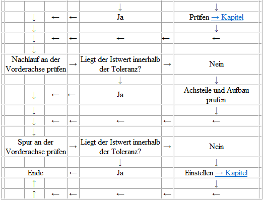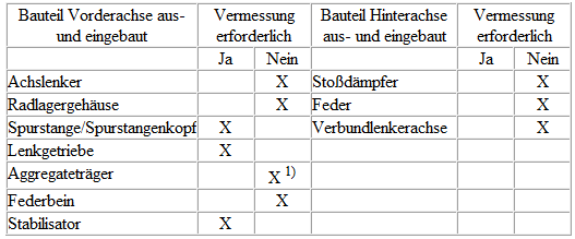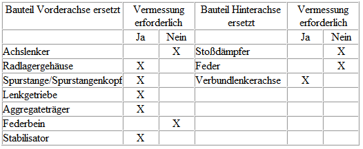 Liegen die Messwerte immer noch außerhalb der zulässigen Toleranz, ist der Achskörper auf Schäden zu prüfen und gegebenenfalls zu ersetzen.