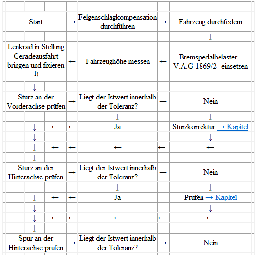 Das Fahrzeug darf nur mit einem von VW/AUDI frei gegebenen Achsmessgerät vermessen werden!