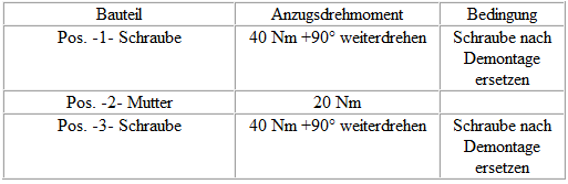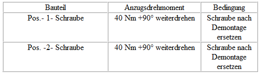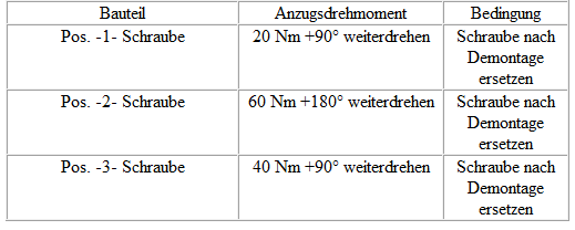 - Schrauben der Aggregatelagerung nacheinander ersetzen, sofern nicht bereits erfolgt und handfest einschrauben.