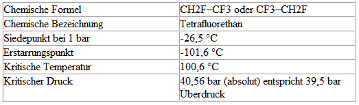 Physikalische Daten des Kältemittels R134a