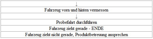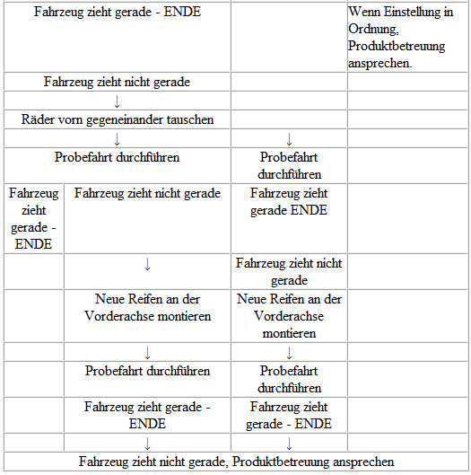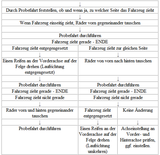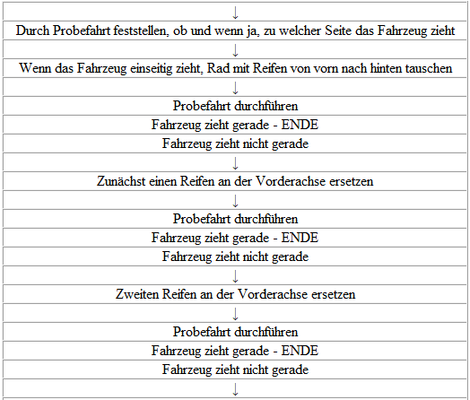 Durch Probefahrt feststellen, ob und wenn ja, zu welcher Seite das Fahrzeug zieht. Wenn das Fahrzeug einseitig zieht.
