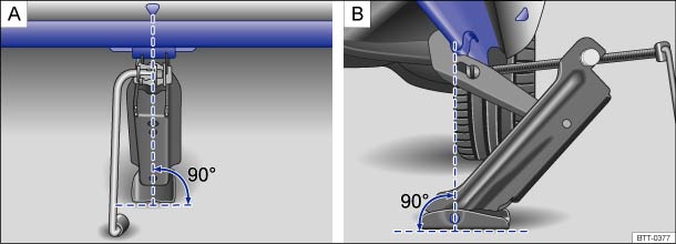 Der Wagenheber darf nur an den gezeigten Aufnahmepunkten (Markierungen
