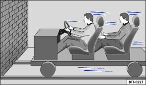 Das physikalische Prinzip eines Frontalunfalls ist einfach zu erklären. Sobald das Fahrzeug in Bewegung ist ⇒ Abb. 40 , entsteht sowohl beim Fahrzeug als auch bei den Fahrzeuginsassen Bewegungsenergie, die so genannte kinetische Energie.