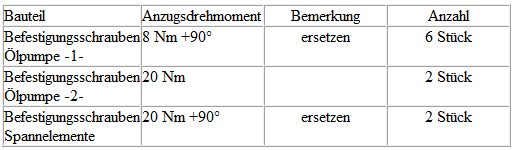- Ölwanne sofort ansetzen und alle Ölwannenschrauben leicht anziehen.