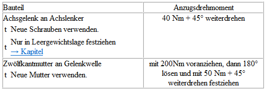 - Achsgelenk mit Achslenker mit neuen Muttern -Pfeile- verschrauben.