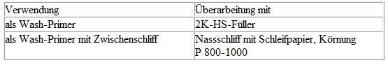 Nach der Ablüftzeit bei +20 ºC überspritzbar mit 2K-HS-Füller.