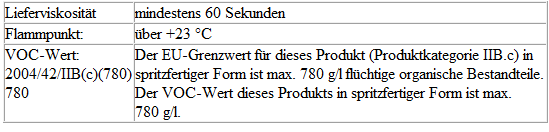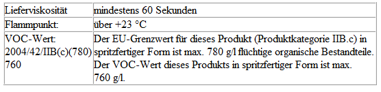 - Spritzfertige Einstellung 8-10 Stunden bei +20 ºC