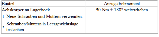 - Schraube für Achskörper wieder in den Lagerbock stecken und mit der Mutter -2- sichern.