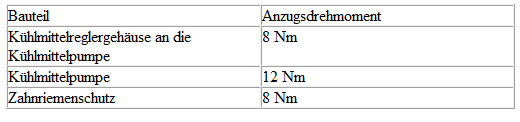 Anzugsreihenfolge vom Kühlmittelreglergehäuse an die Kühlmittelpumpe