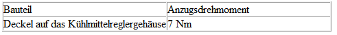 Anzugsreihenfolge vom Thermostatdeckel an das Kühlmittelreglergehäuse