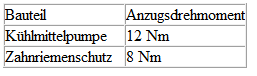 Gefahr von vorzeitigem Verschleiß des Zahnriemens oder der Kühlmittelpumpe.Die folgenden Arbeitsschritte zum Einbau der Kühlmittelpumpe sind unbedingt in der angegebenen Reihenfolge einzuhalten.Dadurch wird das korrekte Spannen des Zahnriemens gewährleistet.Es ist erforderlich, die nächsten Arbeitsschritte mit einem zweiten Mechaniker durchzuführen.