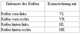 - Kennzeichen Sie auf dem Reifen den Einbauort.