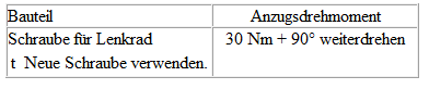 - Bei Einbau eines neuen Lenkrads (ohne Markierung): Lenkrad muss in Mittelstellung aufgesetzt werden (Lenkradspeiche muss waagerecht stehen und Räder in Geradeausstellung).