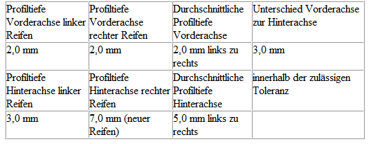 Der Unterschied zwischen Vorder- und Hinterachse darf nicht größer als 3 mm sein.