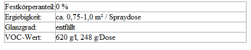 Sicherheitsdatenblätter sowie Warnhinweise auf dem Etikett der Sprühdose sind zu beachten.