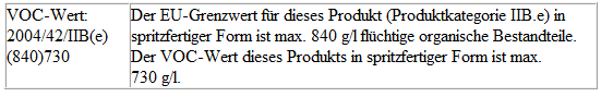Die gewährleistete Lagerstabilität beträgt 36 Monate ab Produktionsdatum. Spätestens verarbeitbar bis zum auf dem Etikett angegebenen Datum bei Lagerung in geschlossenen Originalgebinden bei +20 ºC.