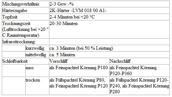 Auch der Einsatz auf thermoplastischen oder zähelastischen Lackierungen ist nicht möglich. In diesen Fällen nur auf blankem Blech spachteln.