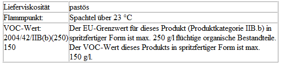 Dieser Spachtel darf nicht auf PVB- (Säure härtenden) Haftgründen oder 1K-Grundierungen (z. B. Kunstharz) aufgebracht werden.