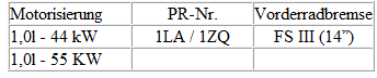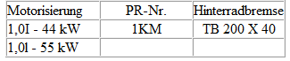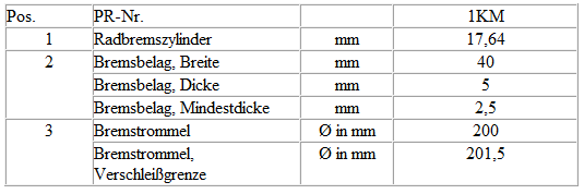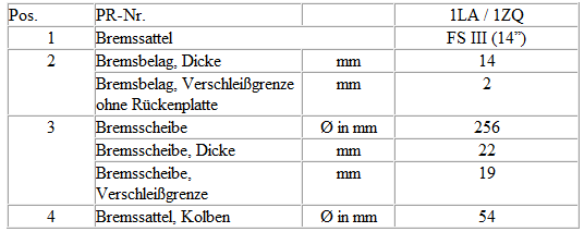Nachstehende Tabelle zeigt Ihnen eine Aufschlüsselung der PR-Nummern. Diese sind für die Kombination Bremssattel/Bremsscheibe/Bremstrommel und Bremsbelag wichtig.