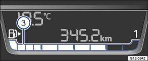a) Gilt nur für Fahrzeuge mit Kraftstoffvorratsanzeige im Display des Kombi-Instruments ⇒ Abb. 114 bzw. ⇒ Abb. 115 .