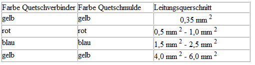Die Crimpzange -VAS 1978/1A- oder die Crimpzange (Grundkörper) -VAS 1978/1-2- zusammen mit dem Wechselkopf 0,35-2,5mm/2 -VAS 1978/1-1-, oder dem Wechselkopf 4,0-6,0mm/2 -VAS 1978/2A- wird zum Verpressen der Quetschverbinder aus den Leitungsstrang-Reparatursets verwendet.