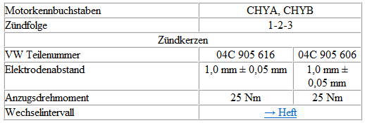 Prüfdaten, Zündkerzen